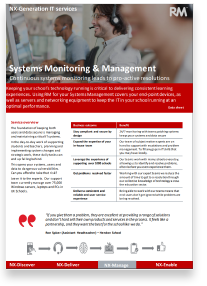 Our support team currently manage over 75,000 Windows servers, laptops and PCs in UK schools. Systems Management includes management of your end-point devices, as well as servers and networking equipment to keep the IT in your school running at an optimal performance.